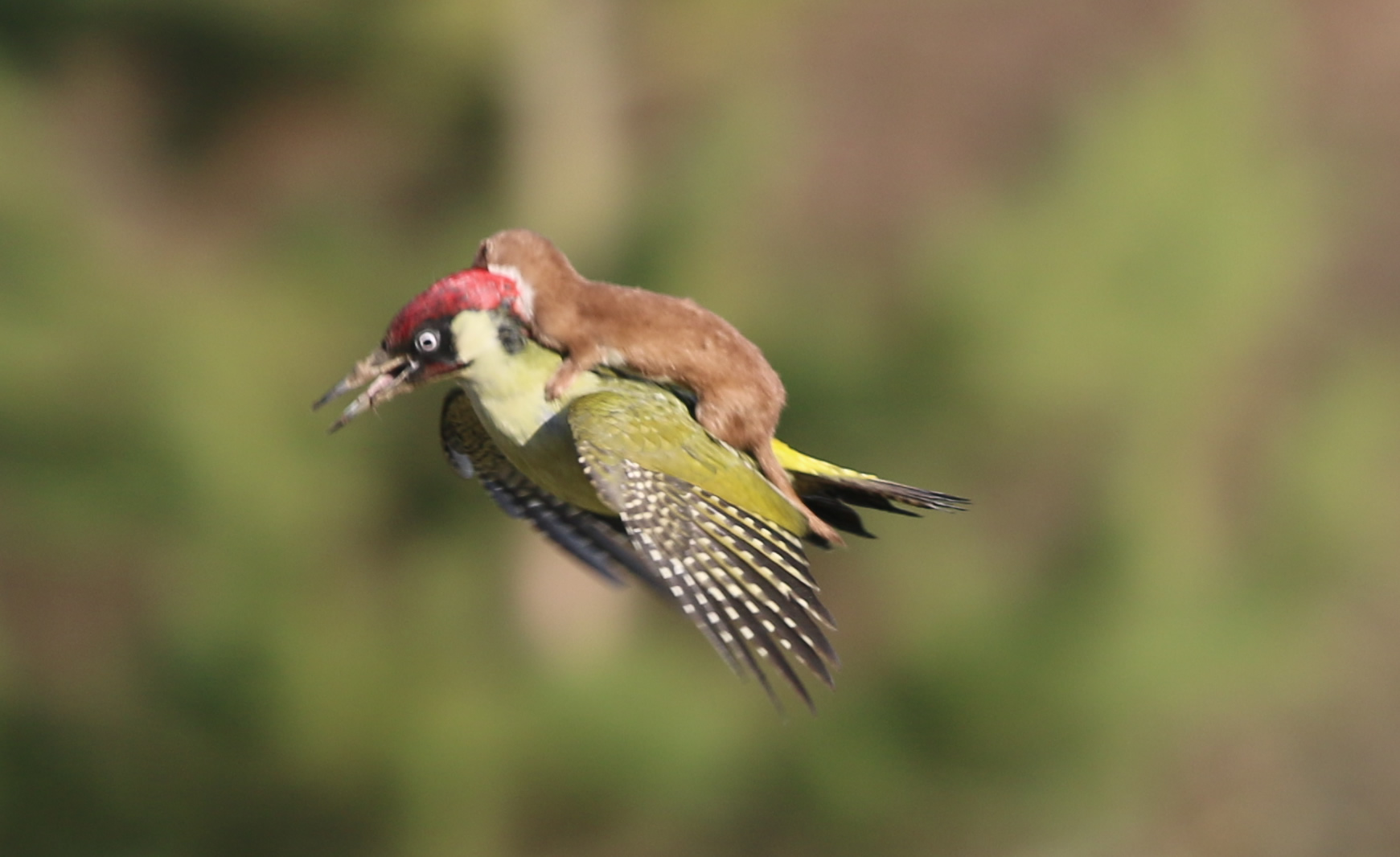 Remember that amazing photo that turned into a “hilarious” meme? The weasel riding the woodpecker? Here, look:
